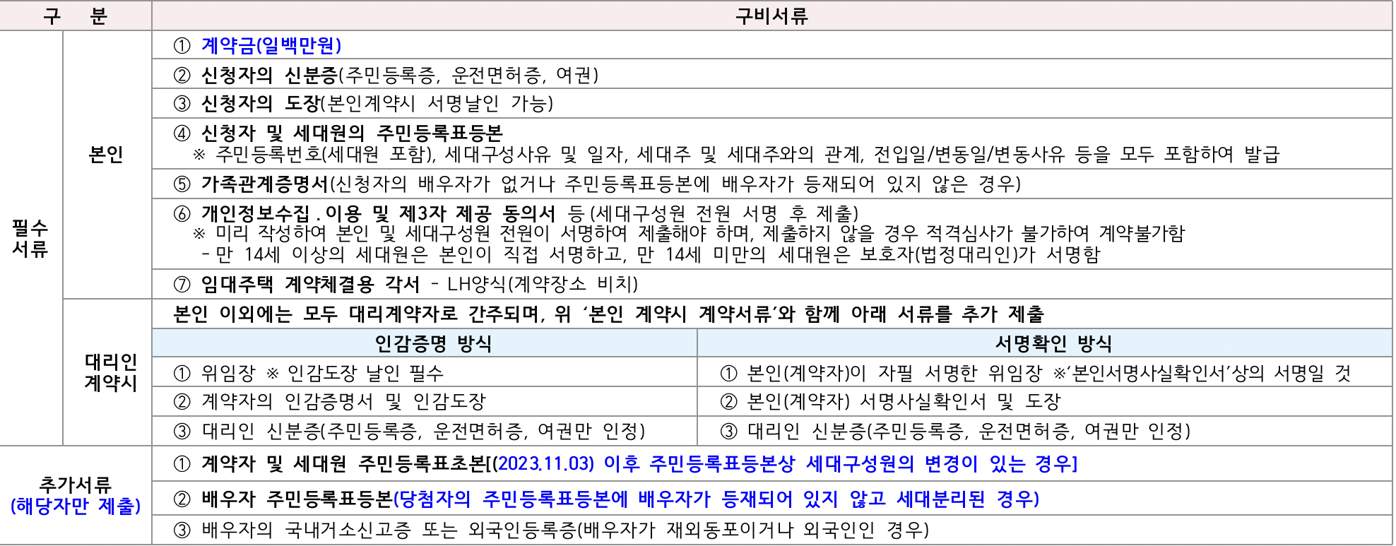 구비서류 – ※2023.11.03(금) 이후 발급분에 한함