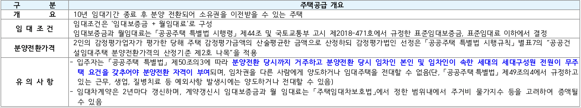 10년 분양전환공공임대주택 공급 개요