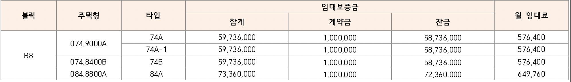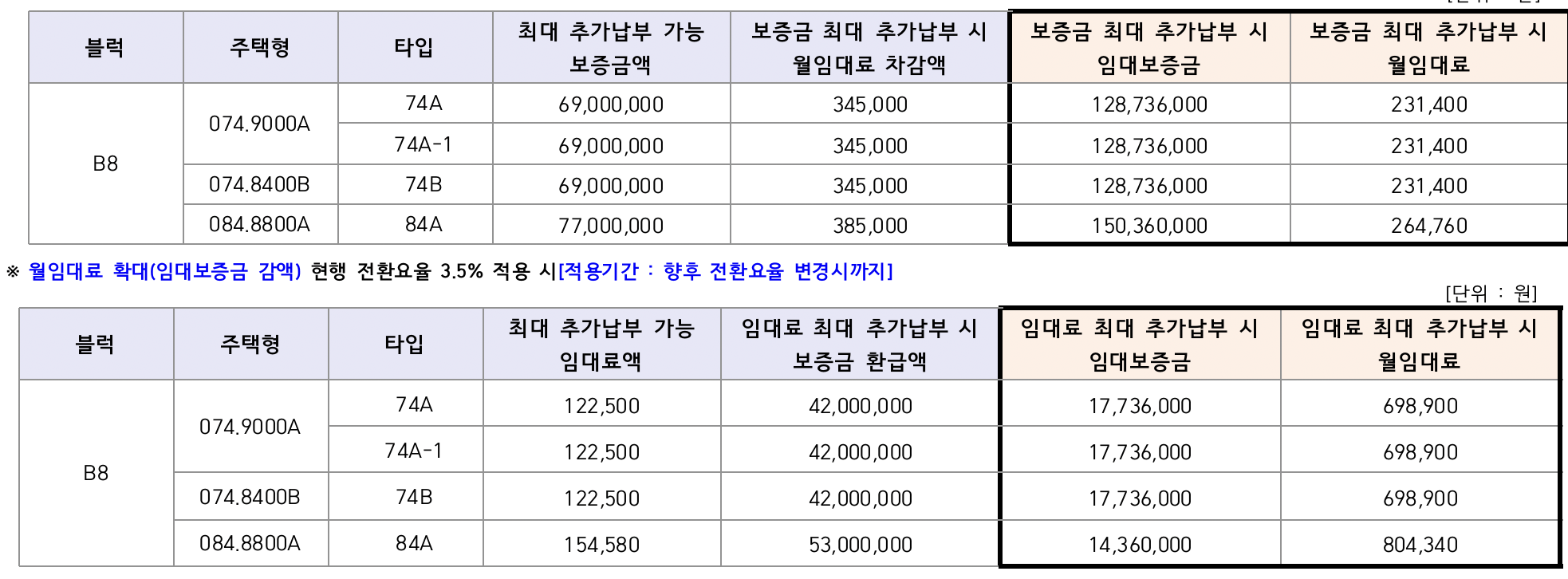 • 일정범위 내에서 임대보증금 100만원 단위로만 상호전환 가능하며, 임대보증금 전환신청에 관한 자세한 사항은 입주 전 안내드릴 예정입니다.