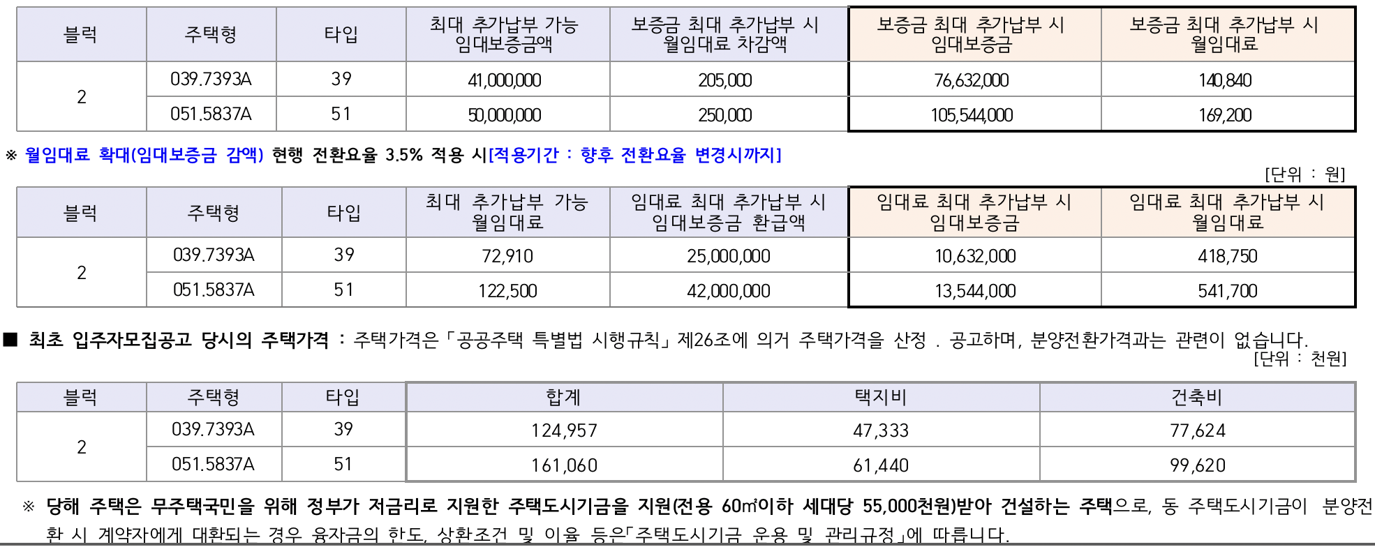 ■ 최초 입주자모집공고 당시의 주택가격 : 주택가격은 「공공주택 특별법 시행규칙」 제26조에 의거 주택가격을 산정 ․ 공고하며, 분양전환가격과는 관련이 없습니다.