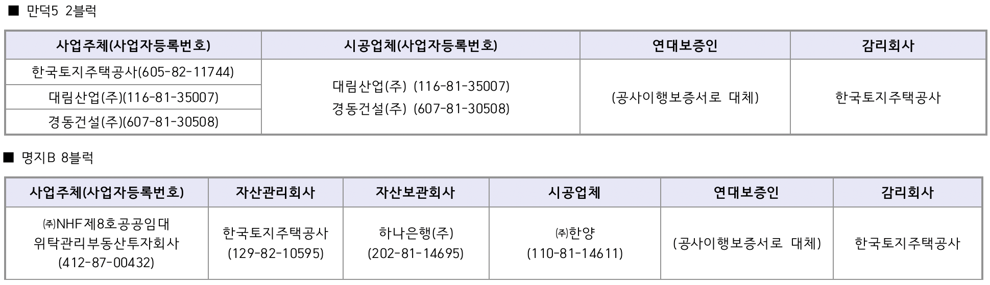 사업주체 및 시공업체 현황