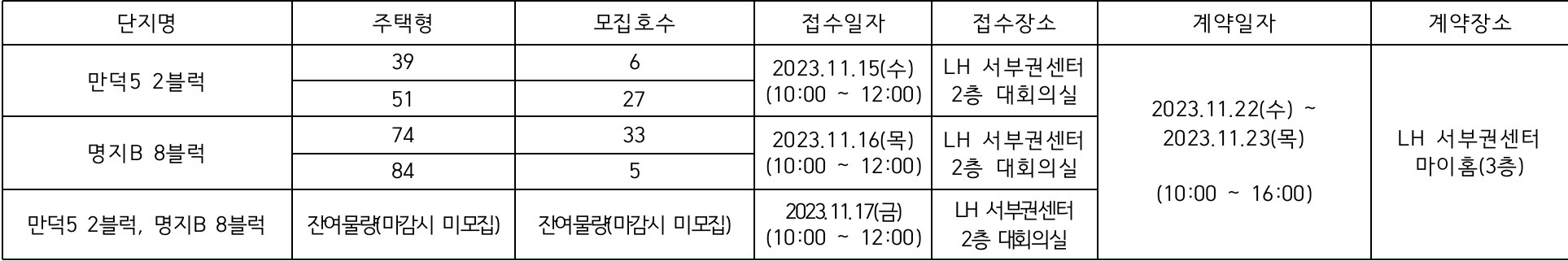 ※ 기계약자 및 세대원(분리배우자 포함)은 동일단지 신청 불가(계약체결 후라도 확인될 경우 계약 해제됨)